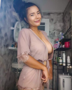 เจอภาพ งานถ่าย แบบที่ น้องกล้วยแขก ขอเบาๆ ด้วยชุดนอน ไม่ได้นอน เดรสสีน้ำตาลเข้ม บอกเลยว่า หน้าอกที่ แทบจะล้น ออกมา ด้านนอก